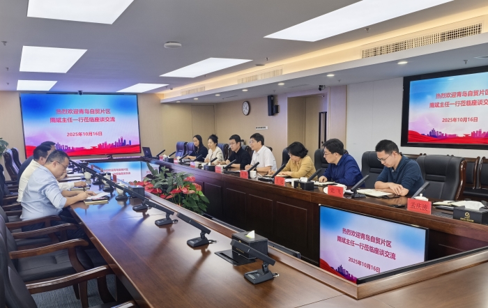青岛自贸片区经济发展部(大数据部)部长洪轶梁、集成电路工作专班项目主管申加宁、经济发展部(大数据部)业务主任张中正,我院副院长李华、副总信息师郑云龙、数据部主任党飞、西海岸部王远、青咨公司董事长崔琪、征信公司执行董事于鹏辉、办公室主任孟庆波陪同座谈。(完)