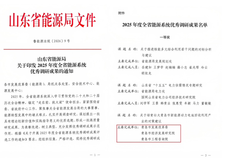 智库力量 | 我院参与完成的调研报告获全省能源系统优秀调研成果一等奖