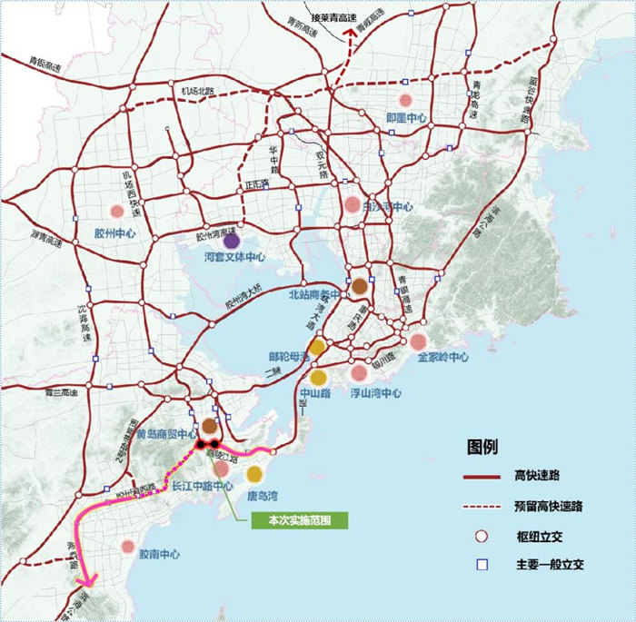 建设背景:根据《青岛市中心城区道路网规划》(2018年10月)、《青岛西海岸新区总体规划(2018—2035年)》(2018年10月),嘉陵江路是青岛市“六横九纵”高快速路网体系中重要“一横”(胶州湾西路—嘉陵江路—胶州湾隧道—胶宁高架—银川路)。本工程与贯通小珠山的G228丹东线(嘉陵江路西延段)改线工程衔接,建成后将形成继滨海大道后的又一条东西大通道,将进一步加强西海岸新区和主城区的联系,拓展城市发展空间。